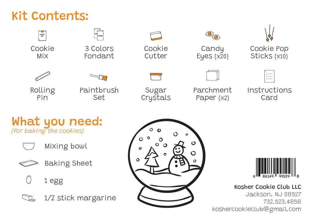 Exciting Mid-Winter activity for friends and family! All the tools you need to bake and decorate your own adorable snowman cookie pops! Comes with clear instructions, as well as additional design ideas.