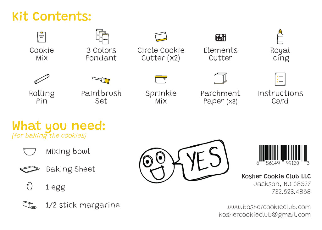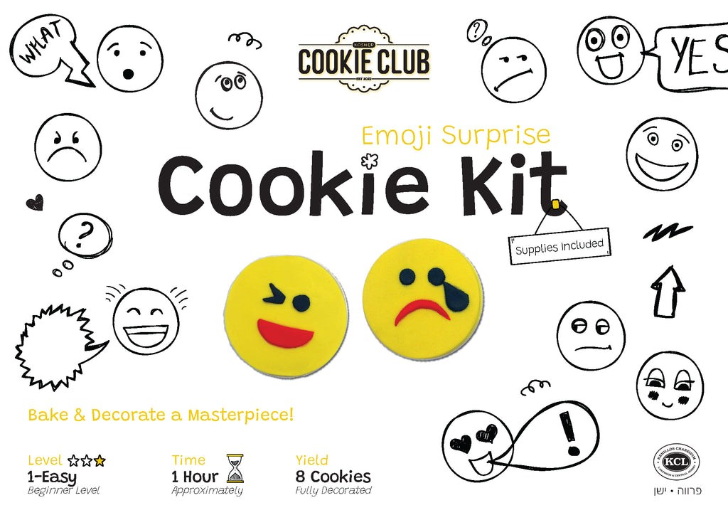Exciting Purim activity for friends and family! All the tools you need to bake and decorate your own adorable emoji surprise cookies! Comes with clear instructions, as well as additional design ideas.